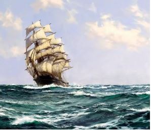 Let’s imagine: It is a hot, humid, late autumn day in 2050. From a high floor in one of lower Manhattan’s surviving skyscrapers, a trading house ship spotter, sees the topmasts of a tall ship entering the Lower Bay. The watcher signals the pilot schooner on post off of what was once Sandy Hook, and waiting Tug Augustin Mouchot a solar powered tug are dispatched to tow the engineless sea-going square rigger to a berth in the new port in the recently completed Gowanus Bay and Erie Basin Harbor with its oyster encrusted seawall created by repurposing concrete and stone from waterfront buildings and piers inundated by rising seas over the last 30 years.