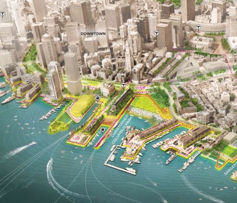 - Create maritime mixed-use zones where public parks, walkways and bikeways are built in flood zones and are adjacent to and part of a working waterfront.